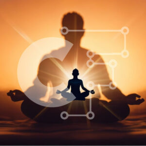 Intra Συλλεκτικό Ξύλινο Παζλ Plywood 4mm - Σιλουέτα διαλογισμού ενάντια στο ηλιοβασίλεμα Σε Ξύλινο Κουτί - Διαστάσεις Puzzle: 10x10 cm – 25 κομμάτια