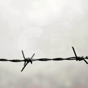 Intra Συλλεκτικό Ξύλινο Παζλ Plywood 4mm - Φράχτη από συρματοπλέγματα σε μια ομιχλώδη ατμόσφαιρα Σε Ξύλινο Κουτί - Διαστάσεις Puzzle: 10x10 cm – 25 κομμάτια