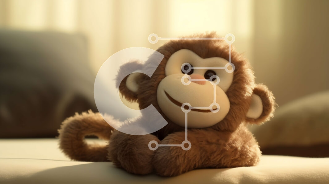 Intra Συλλεκτικό Ξύλινο Παζλ Plywood 4mm - Αξιολάτρευτο ζώο με γέμιση καφέ μαϊμού που χαμογελά στο κρεβάτι Σε Ξύλινο Κουτί - Διαστάσεις Puzzle: 10x10 cm – 25 κομμάτια