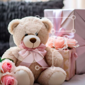 Intra Συλλεκτικό Ξύλινο Παζλ Plywood 4mm - Αξιολάτρευτο αρκουδάκι με ροζ τριαντάφυλλα και κουτί δώρου Σε Ξύλινο Κουτί - Διαστάσεις Puzzle: 10x10 cm – 25 κομμάτια