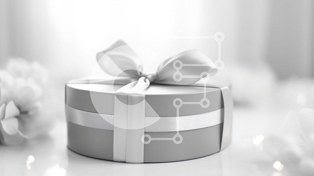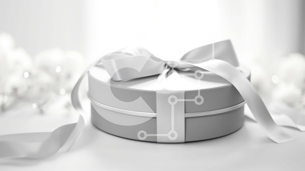 Intra Συλλεκτικό Ξύλινο Παζλ Plywood 4mm - Γκρι κουτί δώρου με λευκή κορδέλα και φιόγκο σε λευκό φόντο Σε Ξύλινο Κουτί - Διαστάσεις Puzzle: 10x10 cm – 25 κομμάτια
