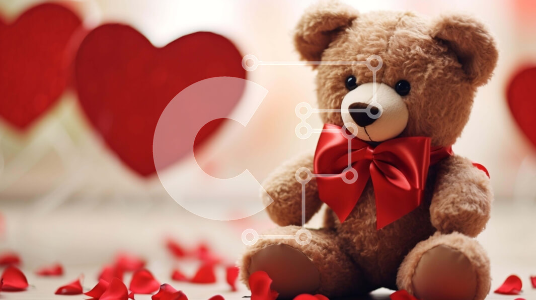 Intra Συλλεκτικό Ξύλινο Παζλ Plywood 4mm - Γιορτή του Αγίου Βαλεντίνου με καφέ αρκουδάκι και βότσαλα σε σχήμα καρδιάς Σε Ξύλινο Κουτί - Διαστάσεις Puzzle: 10x10 cm – 25 κομμάτια