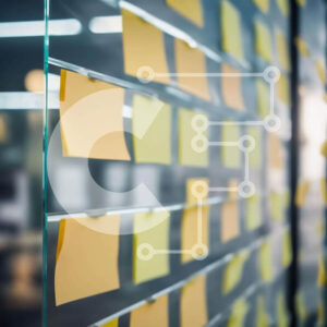 Intra Συλλεκτικό Ξύλινο Παζλ Plywood 4mm - Γυάλινος τοίχος καλυμμένος με κίτρινες νότες post-It Σε Ξύλινο Κουτί - Διαστάσεις Puzzle: 10x10 cm – 25 κομμάτια