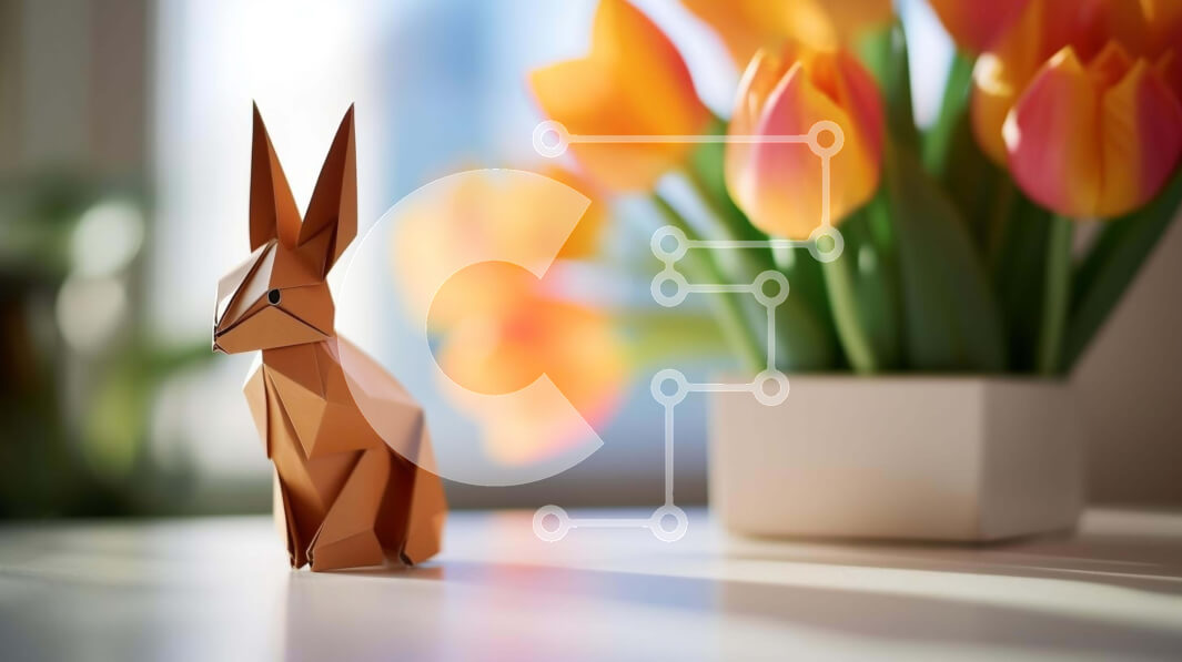 Intra Συλλεκτικό Ξύλινο Παζλ Plywood 4mm - Origami κουνέλι και τουλίπες στο τραπέζι Σε Ξύλινο Κουτί - Διαστάσεις Puzzle: 10x10 cm – 25 κομμάτια