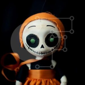 Intra Συλλεκτικό Ξύλινο Παζλ Plywood 4mm - Εκπληκτική κούκλα αποκριών με πρόσωπο κρανίου Σε Ξύλινο Κουτί - Διαστάσεις Puzzle: 10x10 cm – 25 κομμάτια