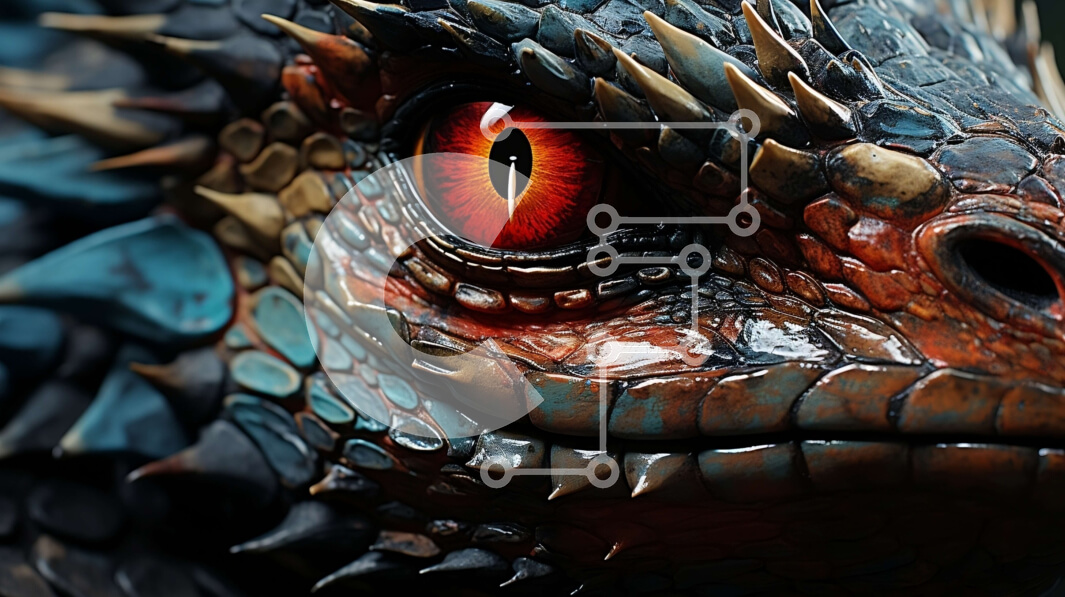 Intra Συλλεκτικό Ξύλινο Παζλ Plywood 4mm - Εκπληκτική κοντινή πλάνο του προσώπου ενός δράκου με περίπλοκες λεπτομέρειες Σε Ξύλινο Κουτί - Διαστάσεις Puzzle: 10x10 cm – 25 κομμάτια