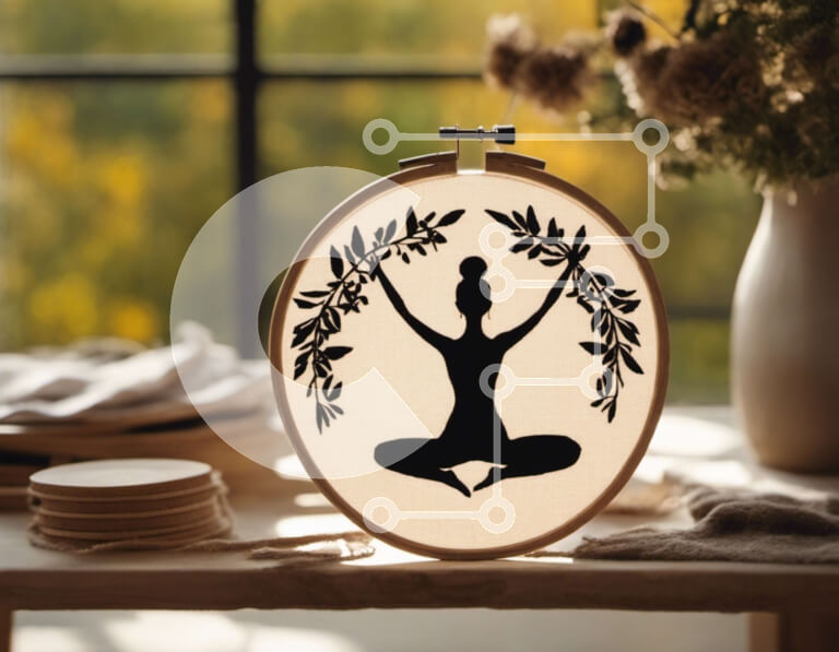 Intra Συλλεκτικό Ξύλινο Παζλ Plywood 4mm - Κέντημα τσέρκι με γυναικεία σιλουέτα σε πόζα γιόγκα Σε Ξύλινο Κουτί - Διαστάσεις Puzzle: 10x10 cm – 25 κομμάτια