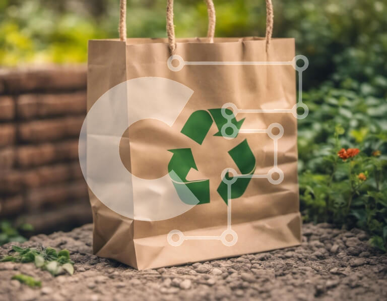 Intra Συλλεκτικό Ξύλινο Παζλ Plywood 4mm - Καφέ χάρτινη σακούλα με σύμβολο ανακύκλωσης Σε Ξύλινο Κουτί - Διαστάσεις Puzzle: 10x10 cm – 25 κομμάτια