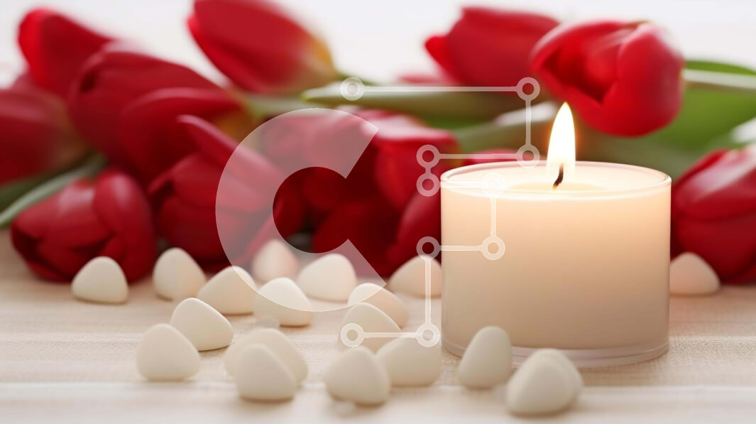 Intra Συλλεκτικό Ξύλινο Παζλ Plywood 4mm - Κερί, λευκοί κύβοι και κόκκινες τουλίπες Σε Ξύλινο Κουτί - Διαστάσεις Puzzle: 10x10 cm – 25 κομμάτια