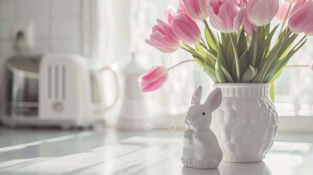 Intra Συλλεκτικό Ξύλινο Παζλ Plywood 4mm - Ανοιξιάτικη διακόσμηση κουζίνας με τουλίπες και ειδώλιο λαγουδάκι Σε Ξύλινο Κουτί - Διαστάσεις Puzzle: 10x10 cm – 25 κομμάτια
