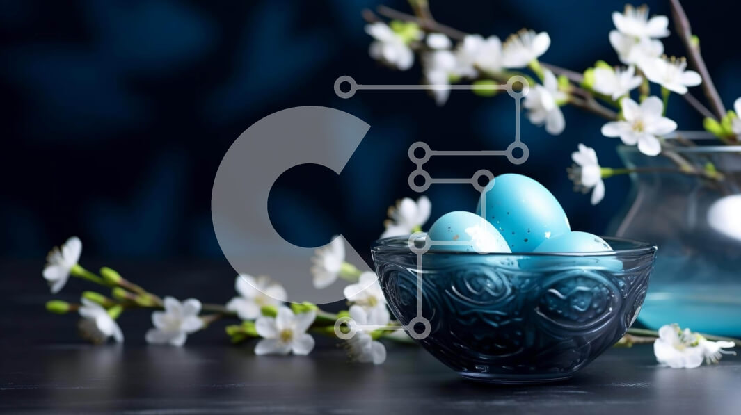 Intra Συλλεκτικό Ξύλινο Παζλ Plywood 4mm - Ανοιξιάτικο ντεκόρ τραπεζιού με μπλε αυγά και λευκά άνθη Σε Ξύλινο Κουτί - Διαστάσεις Puzzle: 10x10 cm – 25 κομμάτια