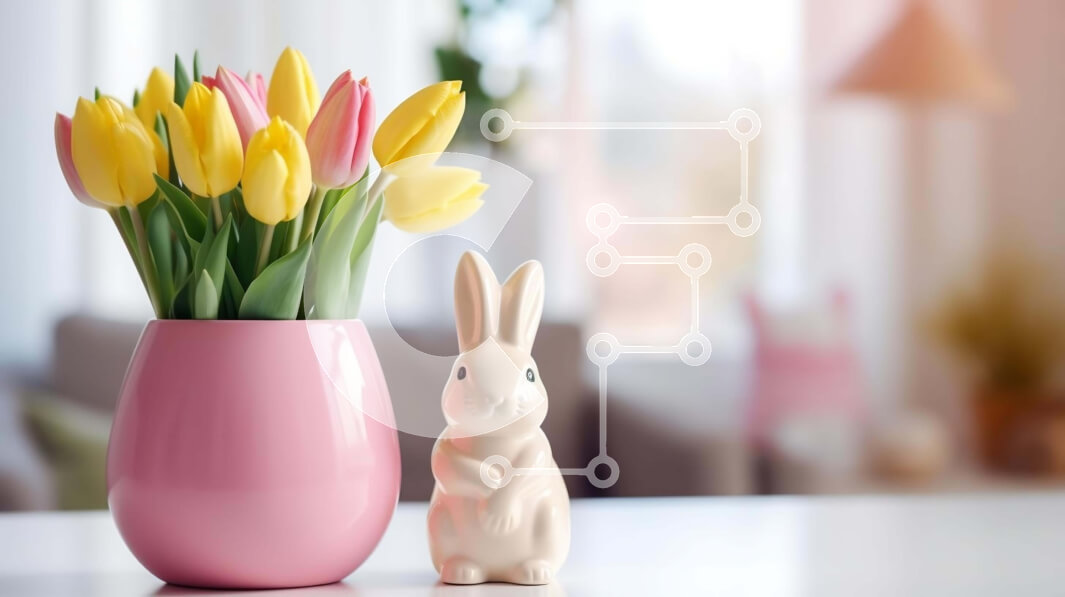 Intra Συλλεκτικό Ξύλινο Παζλ Plywood 4mm - Ανοιξιάτικη επιτραπέζια διακόσμηση με ροζ βάζο, τουλίπες και πασχαλινό λαγουδάκι Σε Ξύλινο Κουτί - Διαστάσεις Puzzle: 10x10 cm – 25 κομμάτια