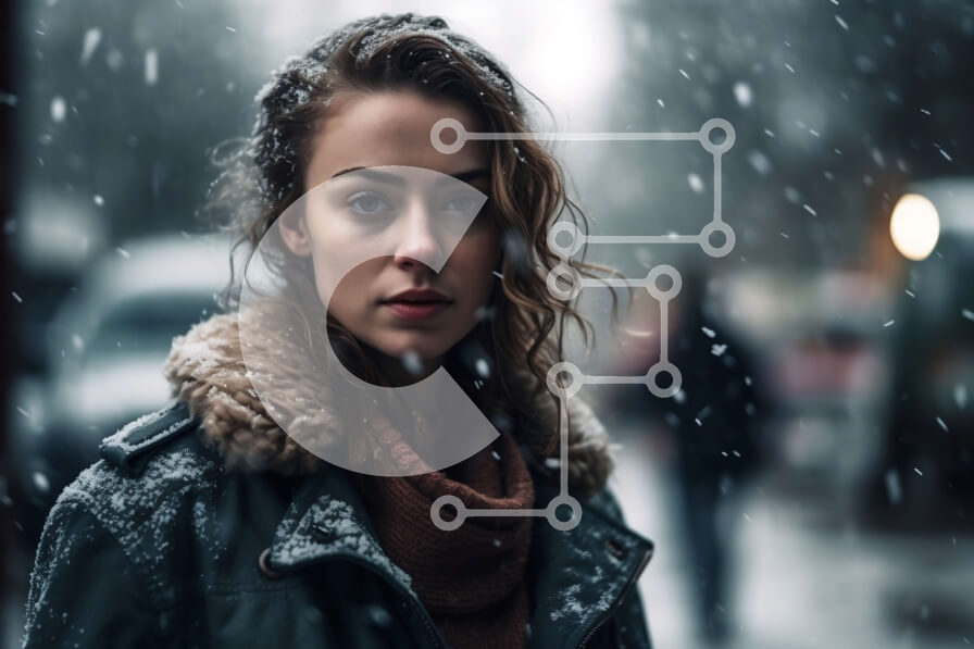Intra Συλλεκτικό Ξύλινο Παζλ Plywood 4mm - Δραματική φωτογραφία μιας συλλογισμένης γυναίκας με μαύρο δερμάτινο μπουφάν σε έναν χιονισμένο δρόμο Σε Ξύλινο Κουτί - Διαστάσεις Puzzle: 10x10 cm – 25 κομμάτια