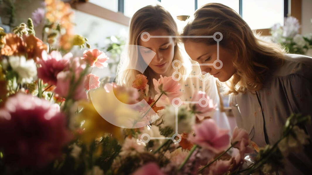 Intra Συλλεκτικό Ξύλινο Παζλ Plywood 4mm - Δύο γυναίκες στο ανθοπωλείο που ασχολούνται με την λουλουδάτη ρύθμιση Σε Ξύλινο Κουτί - Διαστάσεις Puzzle: 10x10 cm – 25 κομμάτια