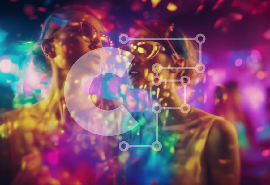 Intra Συλλεκτικό Ξύλινο Παζλ Plywood 4mm - Δύο γυναίκες που διασκεδάζουν σε εκδήλωση Neon-Lit Σε Ξύλινο Κουτί - Διαστάσεις Puzzle: 10x10 cm – 25 κομμάτια
