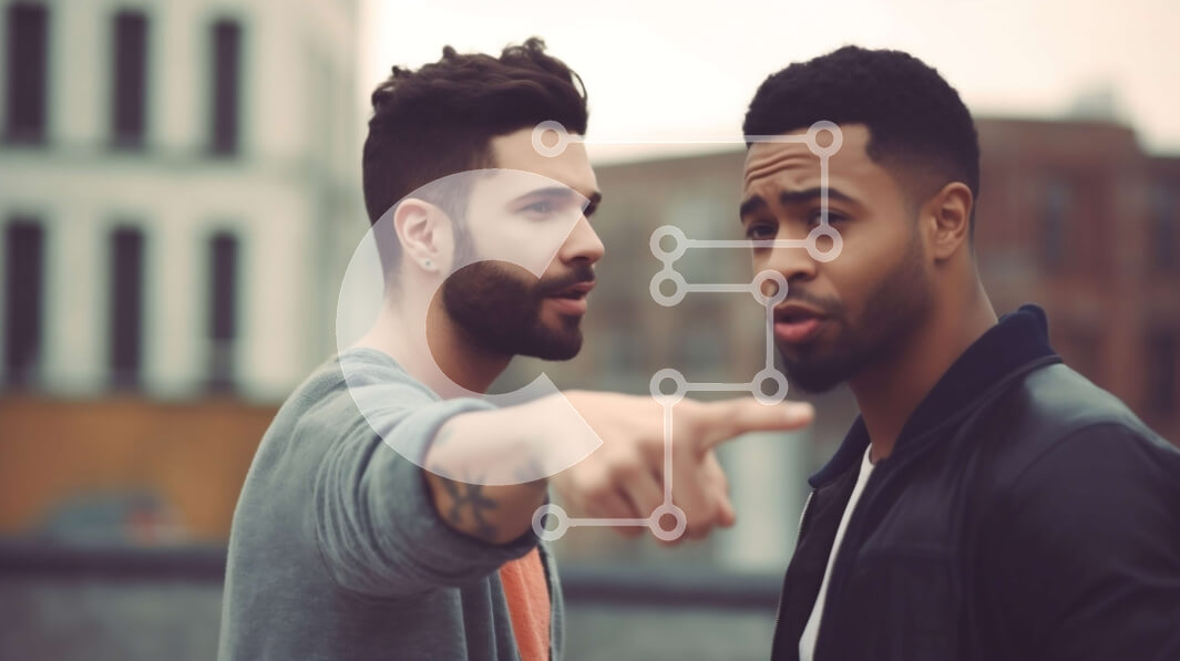 Intra Συλλεκτικό Ξύλινο Παζλ Plywood 4mm - Δύο νεαροί άντρες με casual ρούχα σε μια ταράτσα με θέα στον ορίζοντα της πόλης Σε Ξύλινο Κουτί - Διαστάσεις Puzzle: 10x10 cm – 25 κομμάτια