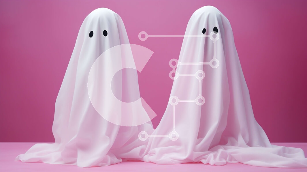 Intra Συλλεκτικό Ξύλινο Παζλ Plywood 4mm - Δύο φαντάσματα με λευκά κοστούμια σε ροζ φόντο Σε Ξύλινο Κουτί - Διαστάσεις Puzzle: 10x10 cm – 25 κομμάτια