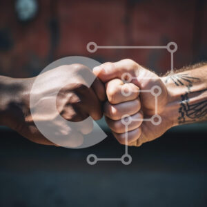 Intra Συλλεκτικό Ξύλινο Παζλ Plywood 4mm - Δύο χέρια με γροθιά που σηματοδοτούν την ενότητα Σε Ξύλινο Κουτί - Διαστάσεις Puzzle: 10x10 cm – 25 κομμάτια
