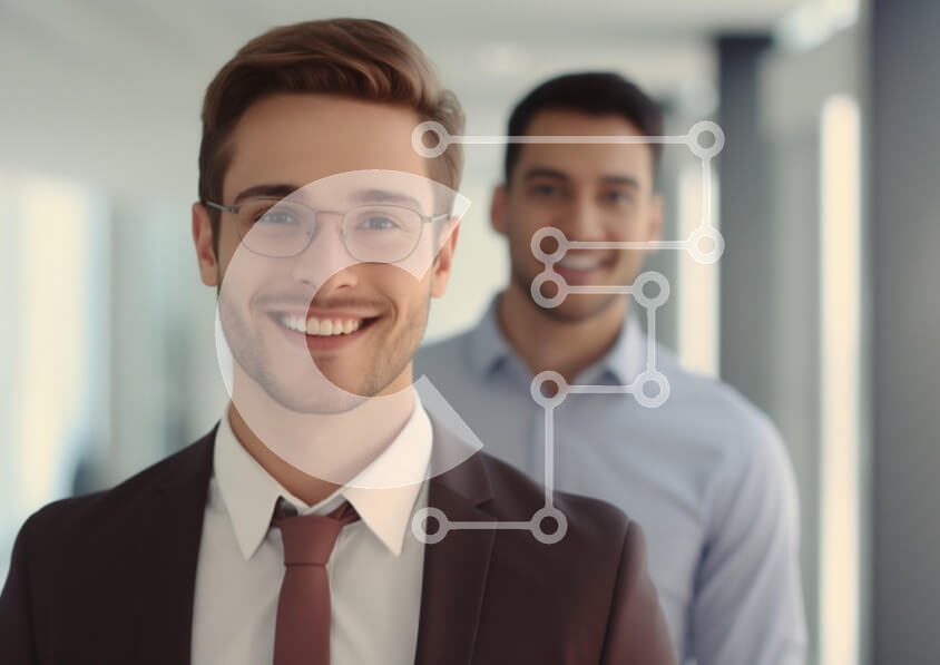Intra Συλλεκτικό Ξύλινο Παζλ Plywood 4mm - Δύο χαμογελαστοί άντρες σε ένα επαγγελματικό περιβάλλον Σε Ξύλινο Κουτί - Διαστάσεις Puzzle: 10x10 cm – 25 κομμάτια