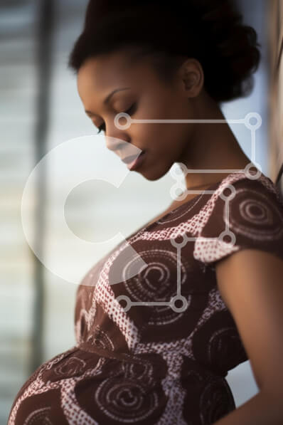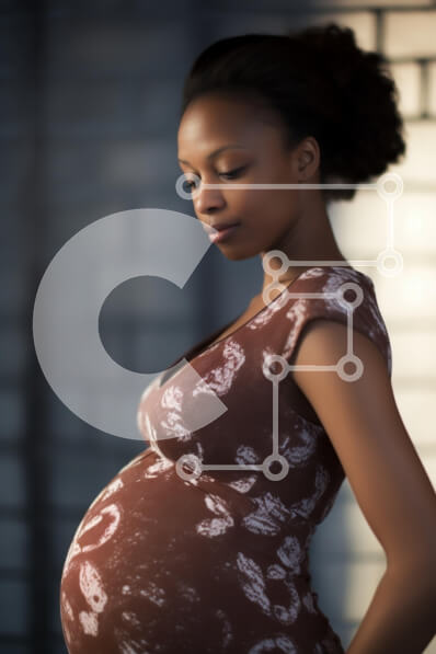 Intra Συλλεκτικό Ξύλινο Παζλ Plywood 4mm - Έγκυος γυναίκα μπροστά από το αφηρημένο γεωμετρικό σχέδιο Σε Ξύλινο Κουτί - Διαστάσεις Puzzle: 10x10 cm – 25 κομμάτια