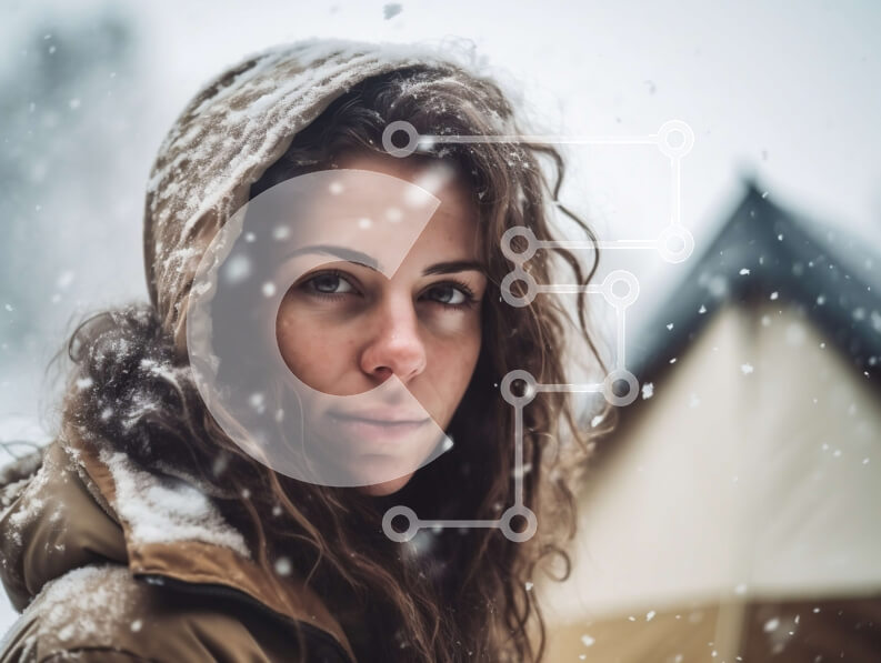Intra Συλλεκτικό Ξύλινο Παζλ Plywood 4mm - Εκπληκτική εικόνα μιας γυναίκας στο χιόνι με μπουφάν με κουκούλα Σε Ξύλινο Κουτί - Διαστάσεις Puzzle: 10x10 cm – 25 κομμάτια