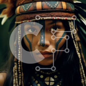 Intra Συλλεκτικό Ξύλινο Παζλ Plywood 4mm - Εκπληκτική εικόνα μιας ιθαγενούς Αμερικανίδας με παραδοσιακή μπογιά κεφαλής και προσώπου Σε Ξύλινο Κουτί - Διαστάσεις Puzzle: 10x10 cm – 25 κομμάτια