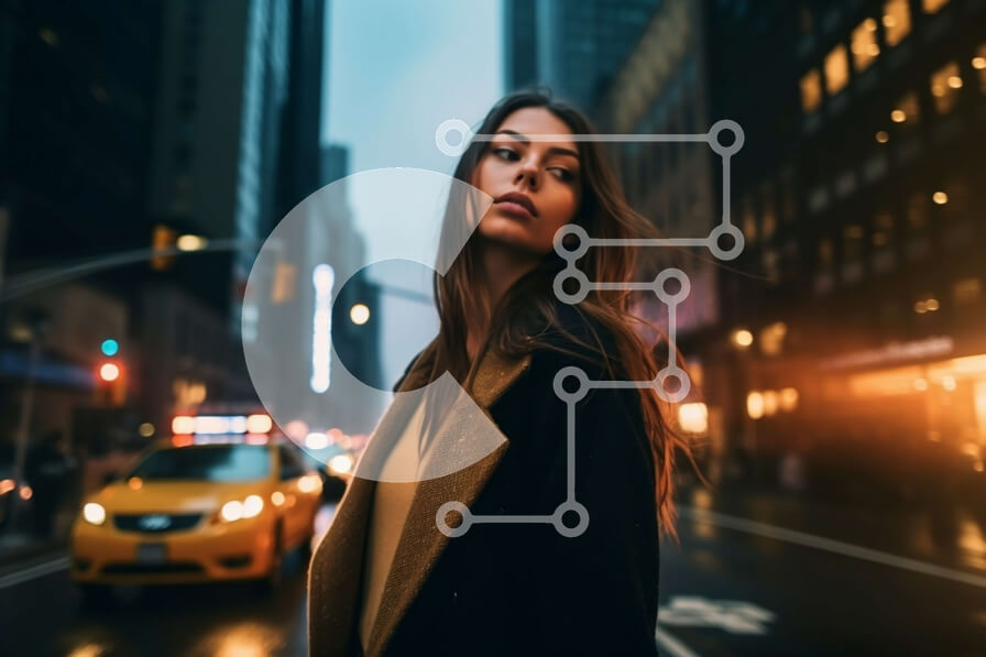 Intra Συλλεκτικό Ξύλινο Παζλ Plywood 4mm - Εκπληκτική εικόνα μιας γυναίκας στην οδό της πόλης στο σούρουπο Σε Ξύλινο Κουτί - Διαστάσεις Puzzle: 10x10 cm – 25 κομμάτια
