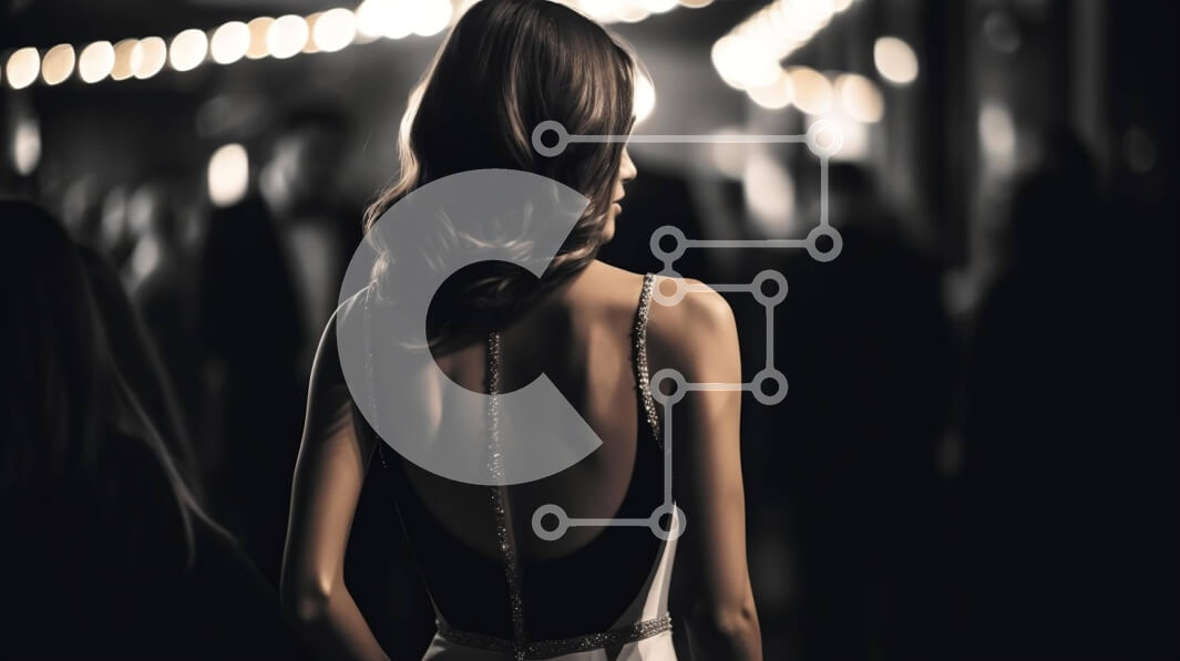 Intra Συλλεκτικό Ξύλινο Παζλ Plywood 4mm - Κομψή γυναίκα που στέκεται μπροστά στο πλήθος σε αμυδρά φωτισμένο δωμάτιο Σε Ξύλινο Κουτί - Διαστάσεις Puzzle: 10x10 cm – 25 κομμάτια