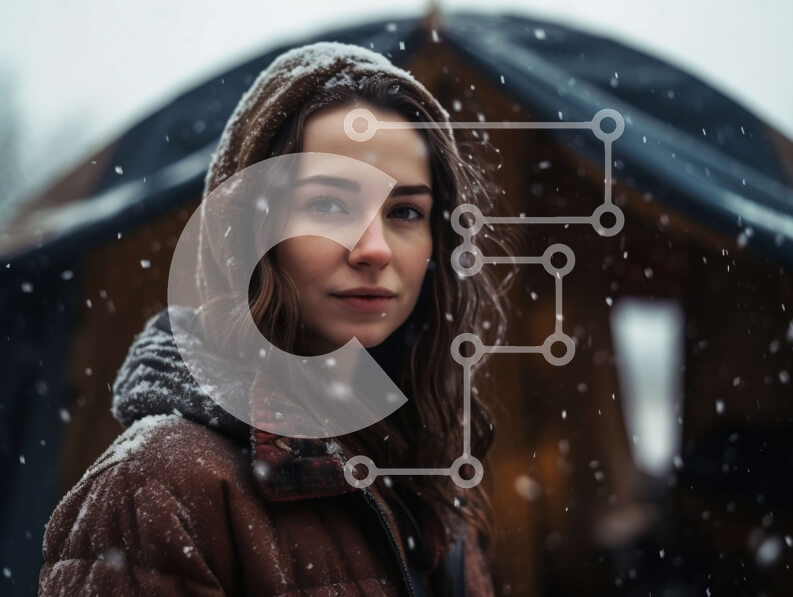 Intra Συλλεκτικό Ξύλινο Παζλ Plywood 4mm - Κομψή γυναίκα που στέκεται στο χιόνι με καφέ σακάκι και γυαλιά ηλίου Σε Ξύλινο Κουτί - Διαστάσεις Puzzle: 10x10 cm – 25 κομμάτια