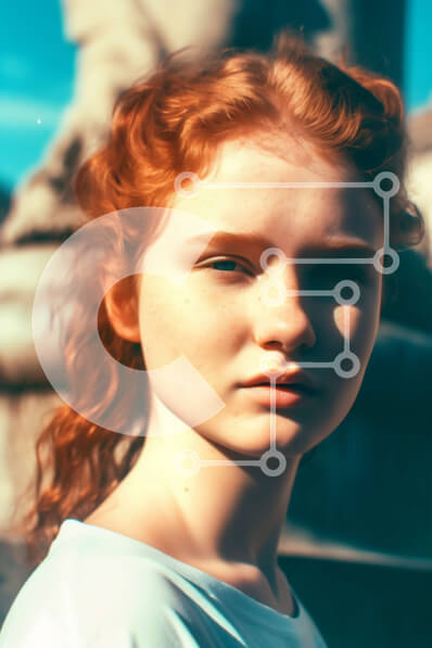 Intra Συλλεκτικό Ξύλινο Παζλ Plywood 4mm - Κομψή γυναίκα που στέκεται μπροστά από ένα κτίριο με φόντο μπλε του ουρανού Σε Ξύλινο Κουτί - Διαστάσεις Puzzle: 10x10 cm – 25 κομμάτια