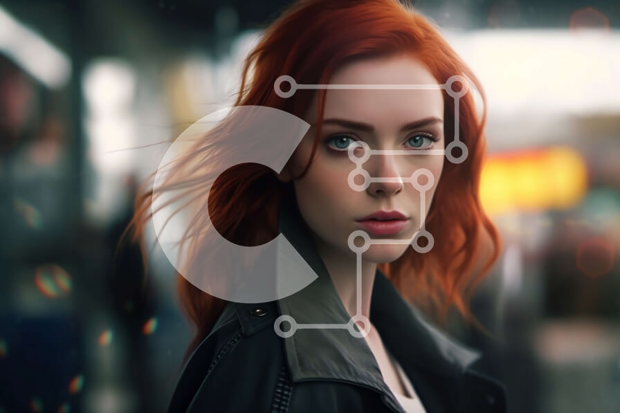 Intra Συλλεκτικό Ξύλινο Παζλ Plywood 4mm - Κομψό πορτρέτο μιας κοκκινομάλλας γυναίκας με μαύρο δερμάτινο μπουφάν Σε Ξύλινο Κουτί - Διαστάσεις Puzzle: 10x10 cm – 25 κομμάτια