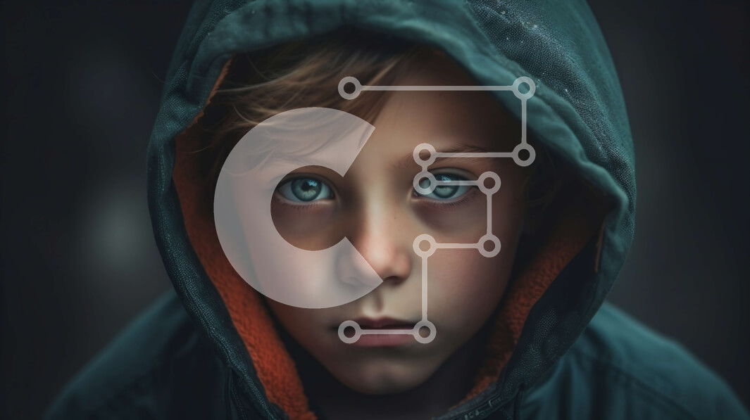 Intra Συλλεκτικό Ξύλινο Παζλ Plywood 4mm - Κομψό πορτρέτο ενός νεαρού αγοριού με φούτερ με κουκούλα με μπλε μάτια Σε Ξύλινο Κουτί - Διαστάσεις Puzzle: 10x10 cm – 25 κομμάτια