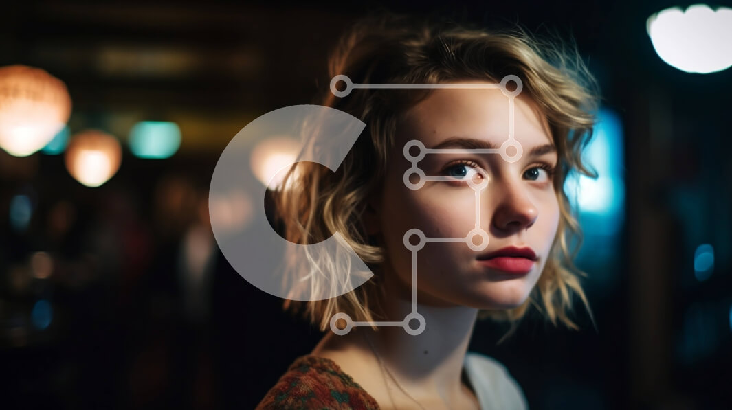 Intra Συλλεκτικό Ξύλινο Παζλ Plywood 4mm - Νεαρή γυναίκα με σγουρά μαλλιά που στέκεται μπροστά από τα φώτα των Χριστουγέννων Σε Ξύλινο Κουτί - Διαστάσεις Puzzle: 10x10 cm – 25 κομμάτια