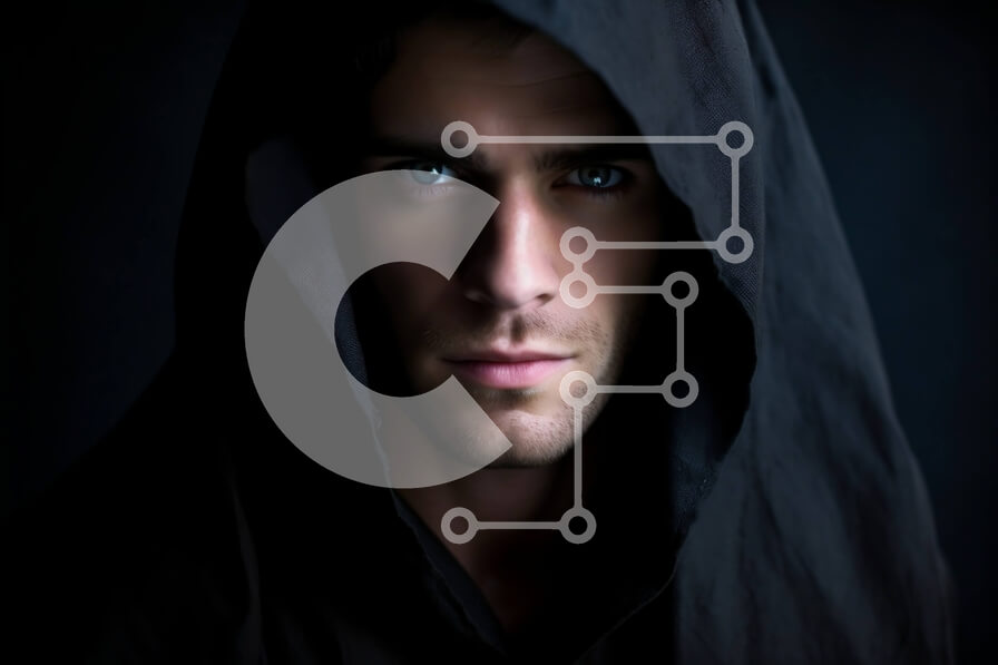 Intra Συλλεκτικό Ξύλινο Παζλ Plywood 4mm - Σοβαρός άνδρας με μαύρη κουκούλα που κοιτάζει την κάμερα Σε Ξύλινο Κουτί - Διαστάσεις Puzzle: 10x10 cm – 25 κομμάτια