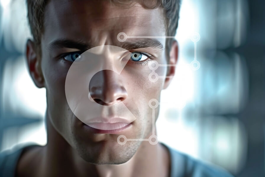 Intra Συλλεκτικό Ξύλινο Παζλ Plywood 4mm - Σοβαρός άνδρας με μπλε μάτια και λευκό πουκάμισο κοιτάζει την κάμερα Σε Ξύλινο Κουτί - Διαστάσεις Puzzle: 10x10 cm – 25 κομμάτια
