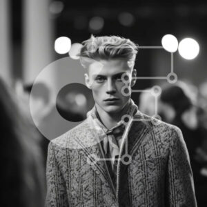 Intra Συλλεκτικό Ξύλινο Παζλ Plywood 4mm - Σοβαρός άνδρας με μοτίβο πουλόβερ και τζιν που στέκεται μπροστά σε ένα πλήθος Σε Ξύλινο Κουτί - Διαστάσεις Puzzle: 10x10 cm – 25 κομμάτια
