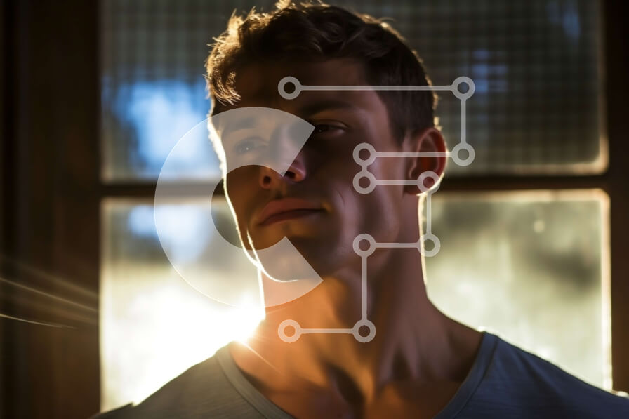 Intra Συλλεκτικό Ξύλινο Παζλ Plywood 4mm - Σοβαρός άνδρας με μπλε πουκάμισο που κοιτάζει έξω από το παράθυρο στο φως του ήλιου Σε Ξύλινο Κουτί - Διαστάσεις Puzzle: 10x10 cm – 25 κομμάτια
