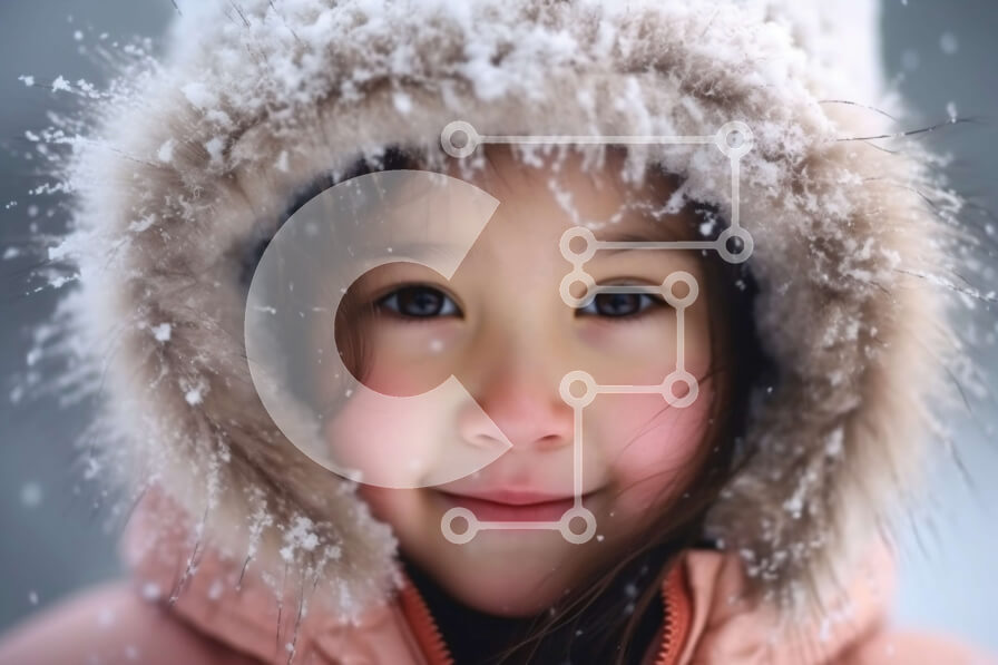 Intra Συλλεκτικό Ξύλινο Παζλ Plywood 4mm - Αξιολάτρευτη εικόνα νεαρής κοπέλας με ροζ μπουφάν και κουκούλα στο χιόνι Σε Ξύλινο Κουτί - Διαστάσεις Puzzle: 10x10 cm – 25 κομμάτια
