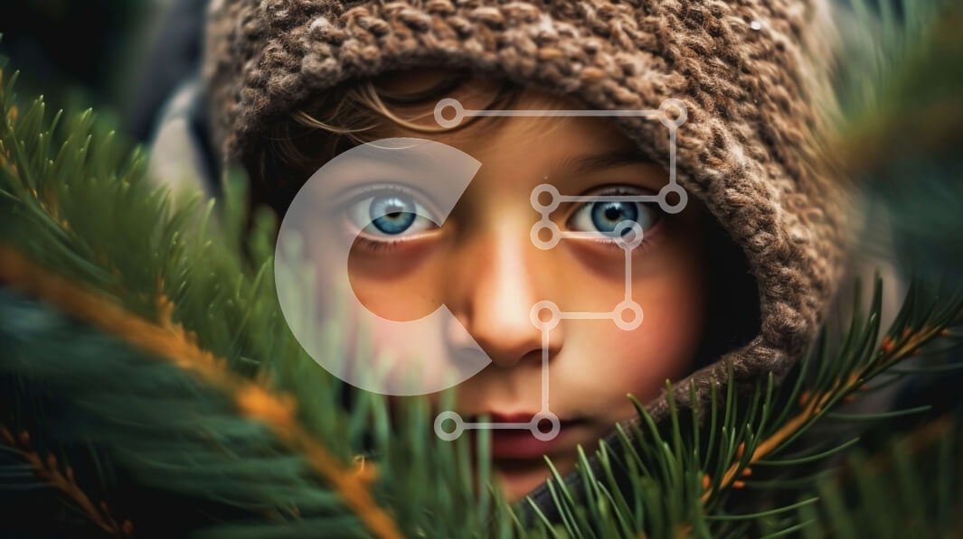 Intra Συλλεκτικό Ξύλινο Παζλ Plywood 4mm - Αξιολάτρευτη εικόνα του νεαρού αγοριού που κρυφοκοιτάζει από πίσω από το δέντρο Σε Ξύλινο Κουτί - Διαστάσεις Puzzle: 10x10 cm – 25 κομμάτια