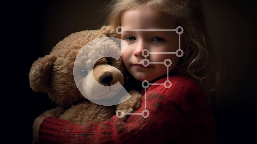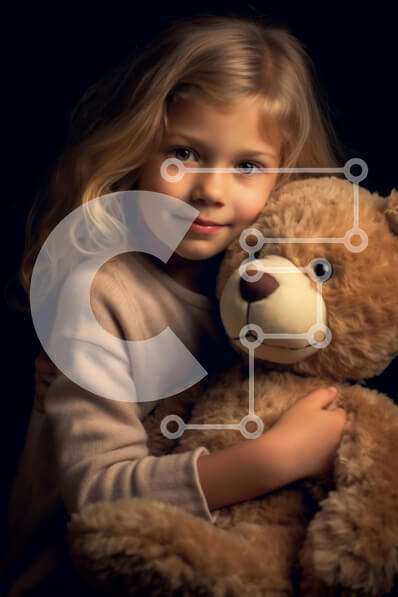 Intra Συλλεκτικό Ξύλινο Παζλ Plywood 4mm - Αξιολάτρευτη εικόνα νεαρής κοπέλας που αγκαλιάζει ένα αρκουδάκι σε μαύρο φόντο Σε Ξύλινο Κουτί - Διαστάσεις Puzzle: 10x10 cm – 25 κομμάτια