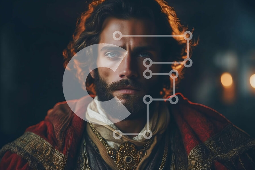 Intra Συλλεκτικό Ξύλινο Παζλ Plywood 4mm - Σοβαρός άντρας με μακριά μαλλιά και γένια σε κόκκινη και χρυσή ρόμπα Σε Ξύλινο Κουτί - Διαστάσεις Puzzle: 10x10 cm – 25 κομμάτια