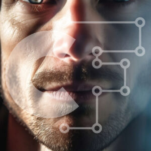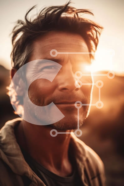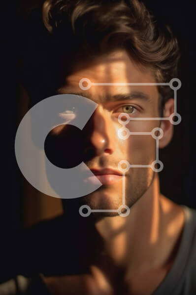 Intra Συλλεκτικό Ξύλινο Παζλ Plywood 4mm - Σοβαρός άντρας με κοντά σπαστά καστανά μαλλιά και τσιμπημένη γενειάδα Σε Ξύλινο Κουτί - Διαστάσεις Puzzle: 10x10 cm – 25 κομμάτια