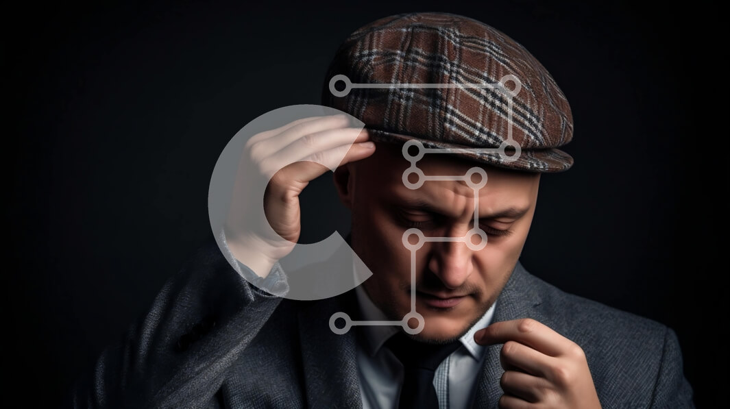 Intra Συλλεκτικό Ξύλινο Παζλ Plywood 4mm - Σοβαρός άντρας με καρό καπέλο και κοστούμι | Φωτογραφία Αρχείου Σε Ξύλινο Κουτί - Διαστάσεις Puzzle: 10x10 cm – 25 κομμάτια