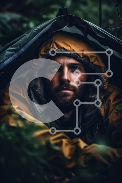 Intra Συλλεκτικό Ξύλινο Παζλ Plywood 4mm - Σοβαρός άντρας με κίτρινο αδιάβροχο και γένια στο δάσος Σε Ξύλινο Κουτί - Διαστάσεις Puzzle: 10x10 cm – 25 κομμάτια
