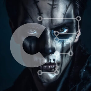 Intra Συλλεκτικό Ξύλινο Παζλ Plywood 4mm - Σοβαρός άντρας με μαύρα μαλλιά και μπλε μάτια με μαύρη δερμάτινη στολή Σε Ξύλινο Κουτί - Διαστάσεις Puzzle: 10x10 cm – 25 κομμάτια
