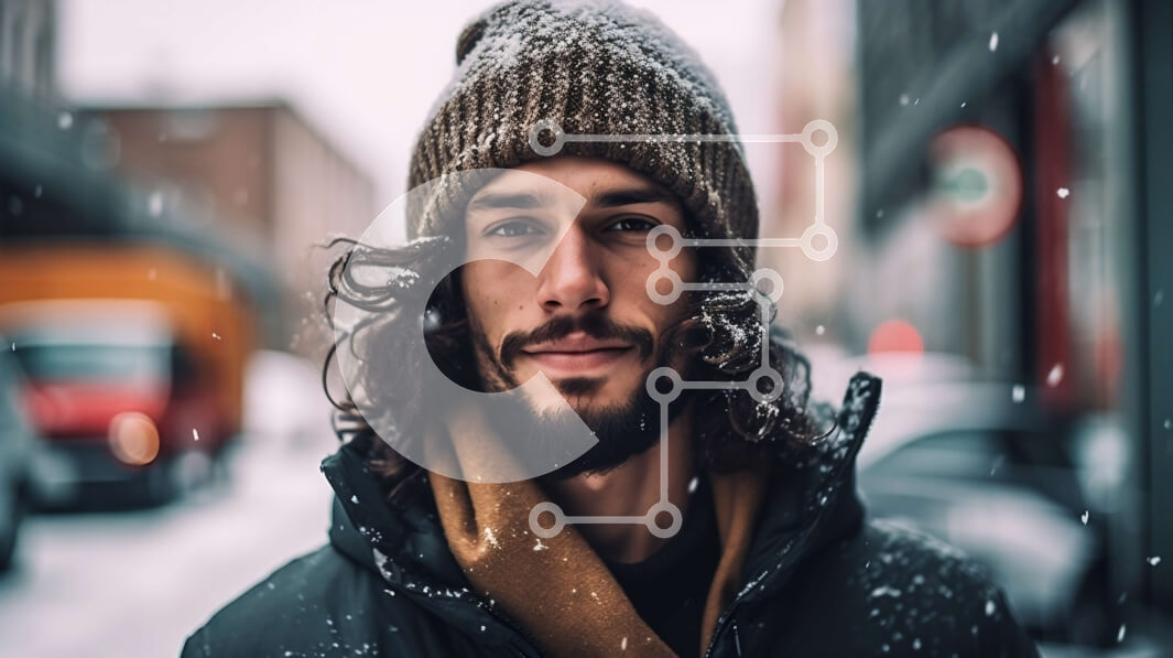 Intra Συλλεκτικό Ξύλινο Παζλ Plywood 4mm - Σοβαρός άντρας με πλεκτό καπέλο και μαύρο σακάκι στη Snowy Street Σε Ξύλινο Κουτί - Διαστάσεις Puzzle: 10x10 cm – 25 κομμάτια
