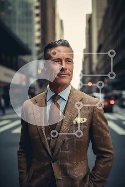 Intra Συλλεκτικό Ξύλινο Παζλ Plywood 4mm - Σοβαρός άντρας με μαύρισμα στολή σε μια οδό της πόλης Σε Ξύλινο Κουτί - Διαστάσεις Puzzle: 10x10 cm – 25 κομμάτια