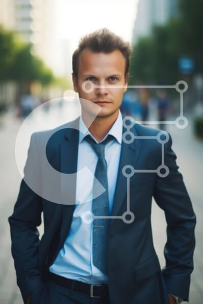 Intra Συλλεκτικό Ξύλινο Παζλ Plywood 4mm - Σοβαρός νεαρός άνδρας με μπλε κοστούμι και γραβάτα στο City Street Σε Ξύλινο Κουτί - Διαστάσεις Puzzle: 10x10 cm – 25 κομμάτια