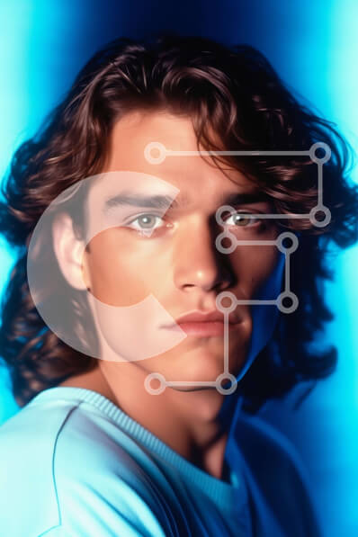 Intra Συλλεκτικό Ξύλινο Παζλ Plywood 4mm - Σοβαρός νεαρός άνδρας με μακριά μαλλιά που φορά ένα μπλε πουκάμισο Σε Ξύλινο Κουτί - Διαστάσεις Puzzle: 10x10 cm – 25 κομμάτια