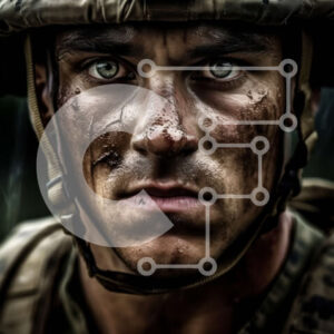 Intra Συλλεκτικό Ξύλινο Παζλ Plywood 4mm - Σοβαρός στρατιώτης με στολή παραλλαγής με ουλή και πρησμένα μάτια Σε Ξύλινο Κουτί - Διαστάσεις Puzzle: 10x10 cm – 25 κομμάτια